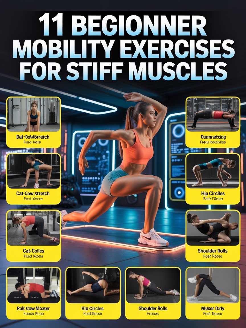 Mobility exercises are a simple and effective way to reduce muscle stiffness and improve flexibility. By practicing gentle movements such as neck tilts, shoulder rolls, and hip circles, beginners can gradually increase their range of motion and comfort.